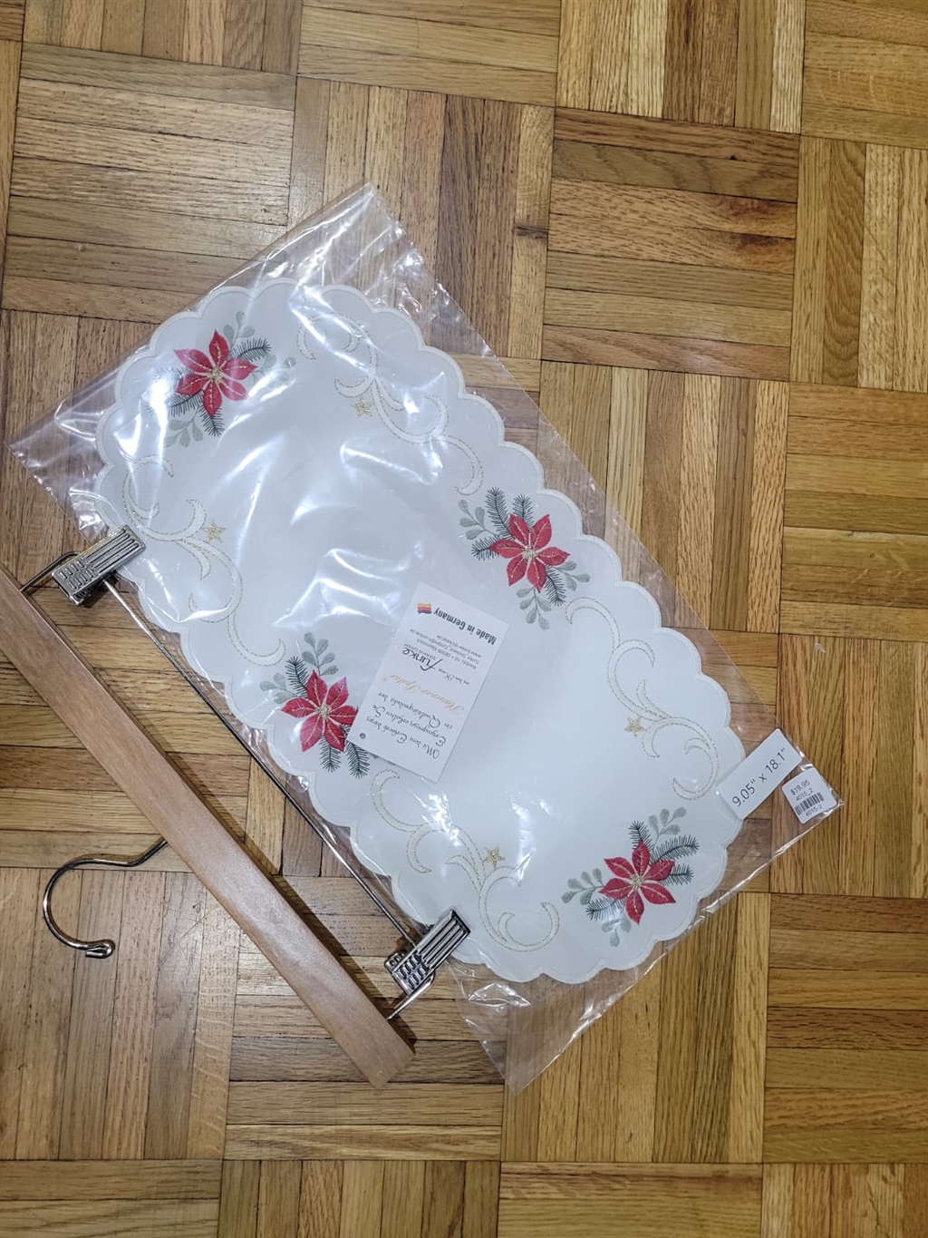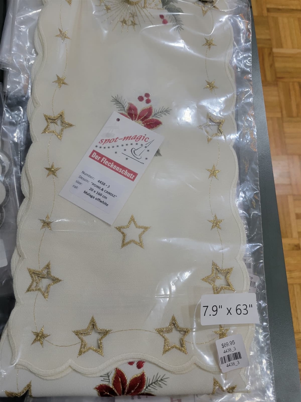 View all Linen Table Runner - White with Poinsettias, Leaves & Stars – Large Questions & Answers